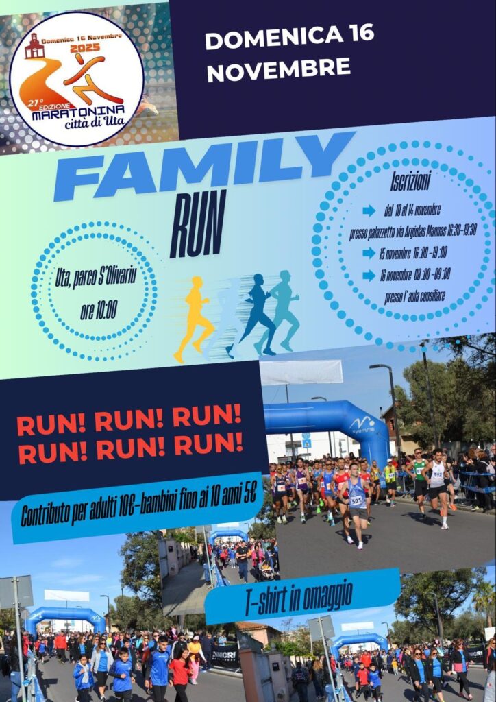 Domenica 16 Novembre 2025 organizza la XXVII Mezza Maratona Città di Uta Corsa podistica competitiva su strada di Km. 21,097